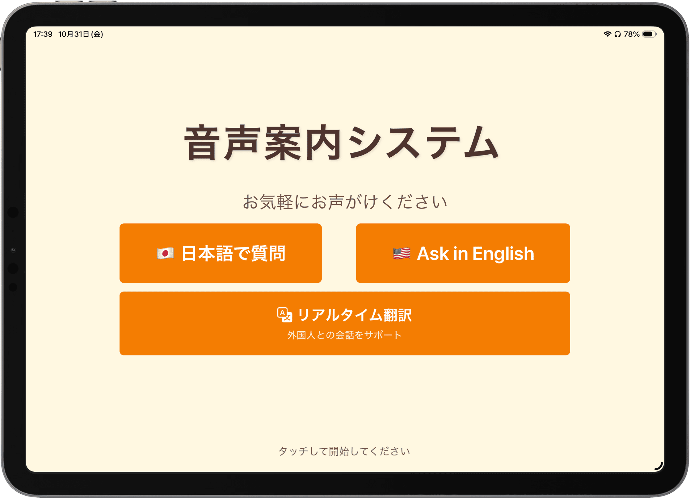 翻訳結果を音声で発話し、視覚・聴覚の両面で案内